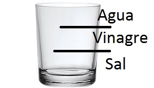 En la parte inferior echa la sal, encima el vinagre y encima el agua. NO REVOLVER.